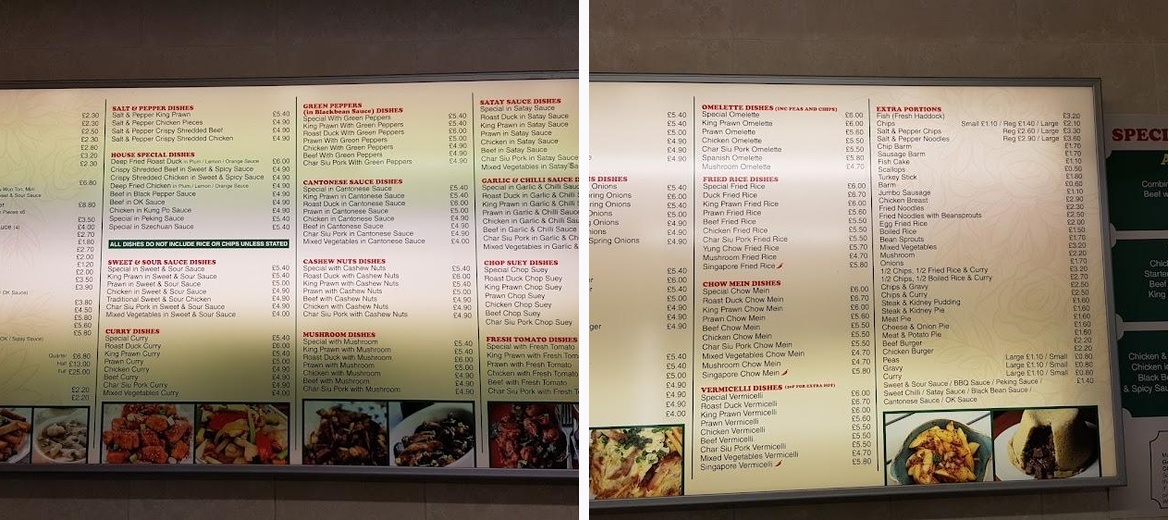 Tried here on Saturday for the first time my hubby only eats English food and he's fussy! He had fish & chips and enjoyed them.....I had salt & pepper chicken wings and special chow mein ....it was really nice ...lots of fresh veg and plenty too will definitely go again :-)